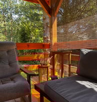 Taras 1 z przodu domku oraz Taras 2 z tyłu domku przestronny.